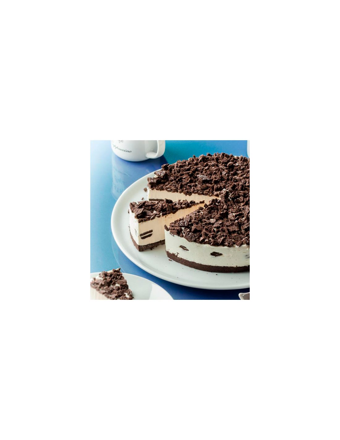 Su marrón típico de chocolate con leche, negro por las oreo y blanco por la nata, es el perfecto reflejo de su sabor a chocolate, nata y galletas Oreo. Esta tarta, con compactas galletas Oreo como base y una capa de nata con otra de chocolate, posee en su interior mini galletas Oreo enteras y a trocitos, cubierta a su vez de Oreo molida. Su consistencia firme y textura suave con un toque crujiente por las galletas, ¡hace que sea imposible resistirse!