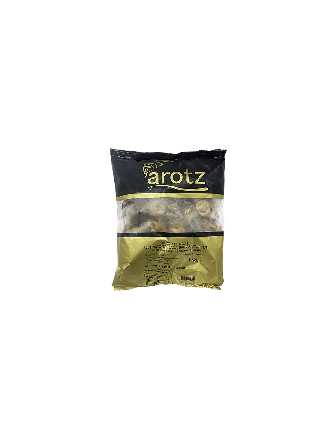 Surtido de setas Baby y Boletus ultracongelado formado por boletus grupo edulis, lentinus edodes (shiitake), pholiota mutabilis (nameko) y pleorotus ostreatus (seta de cardo).