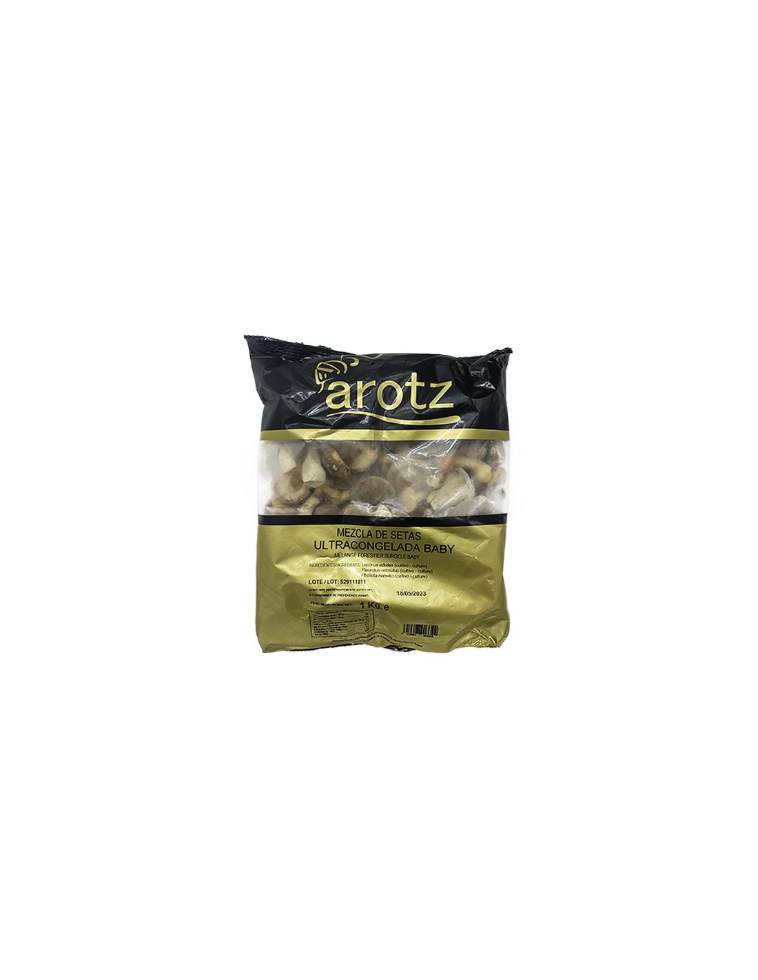 Surtido de setas Baby y Boletus ultracongelado formado por lentinus edodes (shiitake), pholiota mutabilis (nameko), pleorotus ostreatus (seta de cardo).