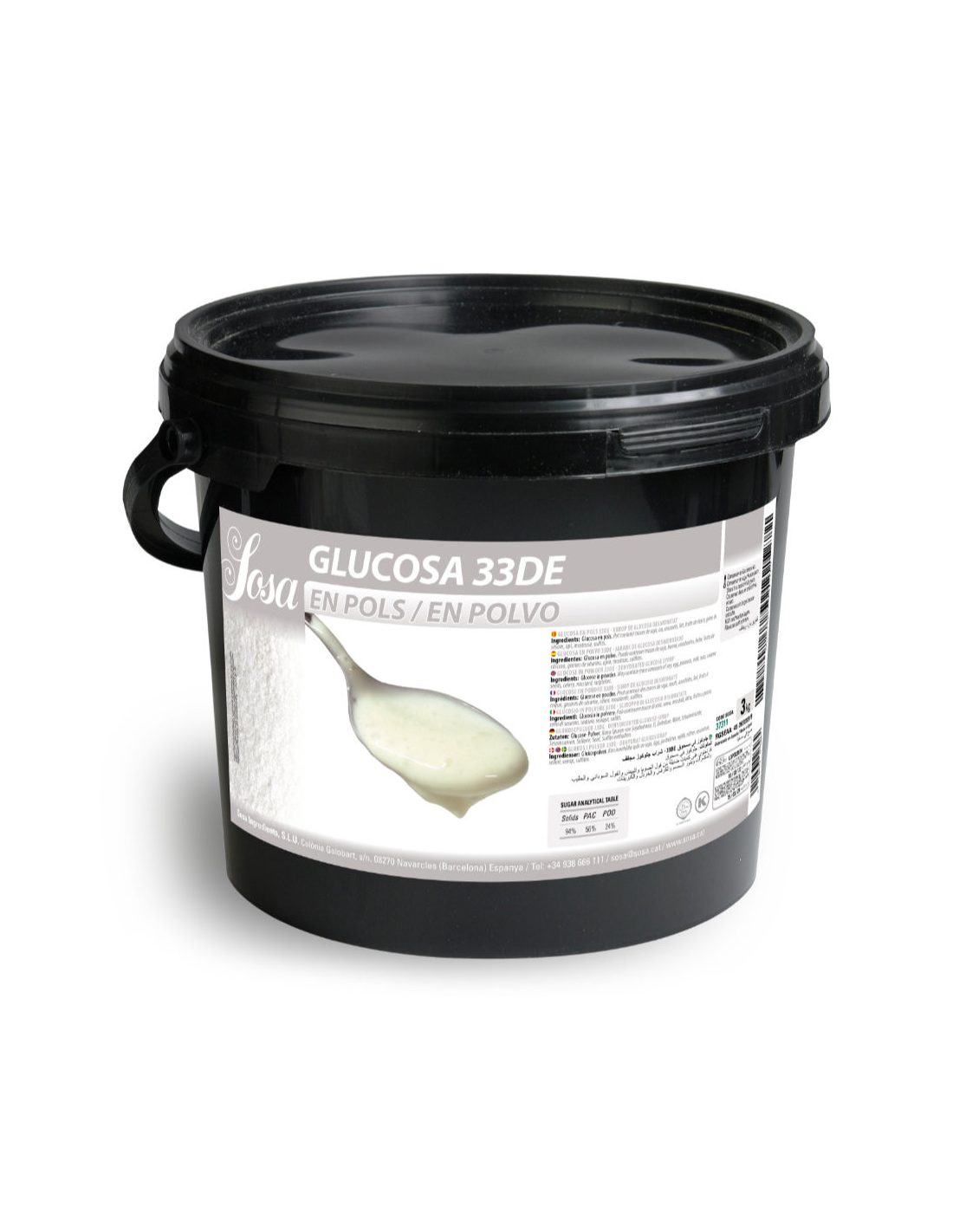 La glucosa en polvo es jarabe de glucosa deshidratado. Previene la recristalización del azúcar en caramelos y gominolas. Da elasticidad y mantiene tiernas elaboraciones dulces como bollería, ganaches y trufas. Se pueden sustituir 75 g de glucosa en polvo por 100 g de glucosa líquida.