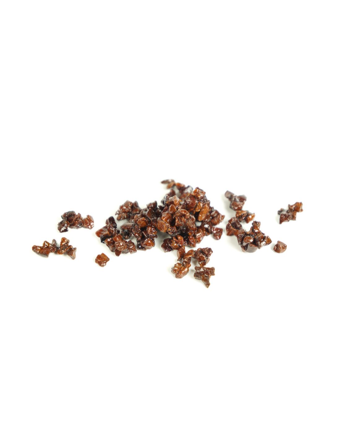Propiedades: Con la técnica de caramelizado cantonesa o también conocida como técnica de confitado al estilo “Cantón”, se consigue una caramelización mucho más fina y de calidad que con la técnica tradicional. Recibe este nombre por ser originaria de esta región, cercana a la bahía de Hong Kong. Los frutos secos se cuecen durante horas en un sirope a base de azúcar, que se lleva a ebullición para que caramelice. El jarabe se introduce en el interior del fruto por osmosis, a diferencia del caramelizado tradicional en el que el azúcar queda en el exterior. Una vez pasado el tiempo adecuado, los frutos secos se extraen y se fríen con sumo cuidado y durante el tiempo justo para acabar el proceso, resultando un caramelizado excepcional.