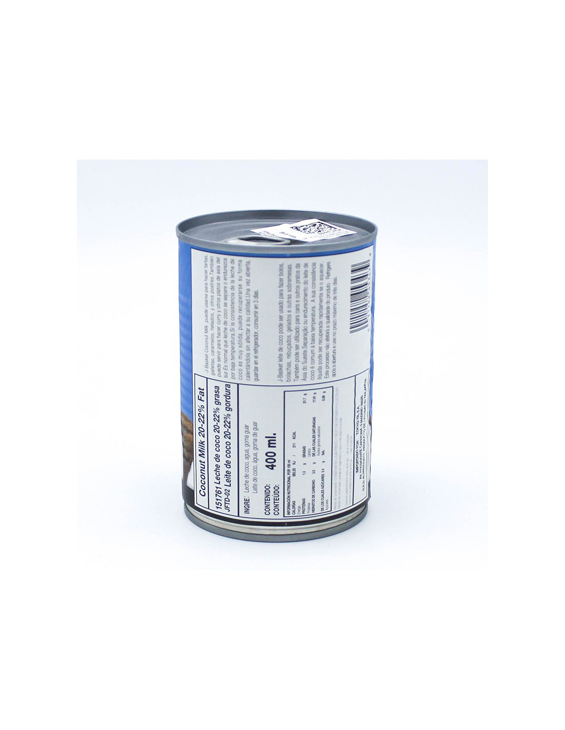 La leche de coco J-Basket, con un 20-22% de grasa, contiene más coco al ser más graso, lo que se aprecia en su textura altamente cremosa y su sabor dulce.